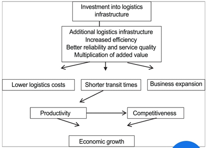 Answer: Investments on logistics infrastructure improves logistics capacity, increases efficiency and competitiveness, reduces logistics costs, decreases transportation time, and increases employment opportunities. Thus, it ensures economic growth and sustainable development.