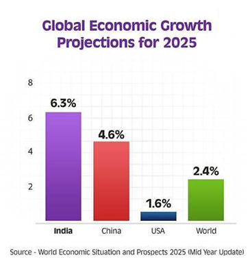 According to the mid-year update of the World Economic Situation and Prospects (released by the UN in May 2025), India is projected to grow at 6.3% in the current fiscal year — the fastest among major economies.
