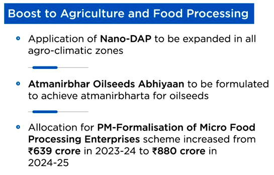 - Pradhan Mantri Formalisation of Micro Food Processing Enterprises Yojana has assisted 2.4 lakh SHGs and 60000 individuals with credit linkages.