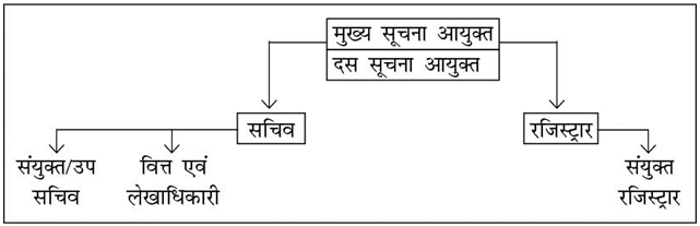 - उत्तर प्रदेश सूचना आयोग में एक मुख्य सूचना आयुक्त एवं अन्य सूचना आयुक्त होते हैं जिनकी संख्या 10 से अधिक नहीं हो सकती।