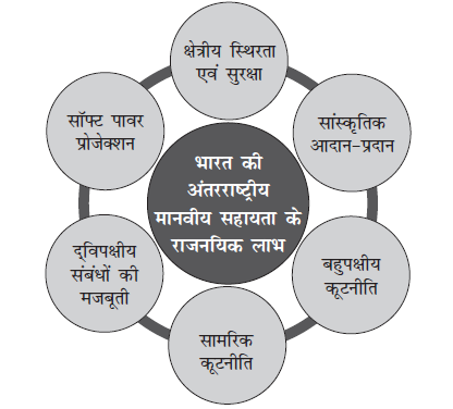 - अंतरराष्ट्रीय मानवीय सहायता के प्रति भारत की प्रतिबद्धता वैश्विक मंच पर भारत के प्रभाव को बढ़ाती है। इसके साथ ही कई तरह के राजनयिक लाभ प्रदान करती है।
