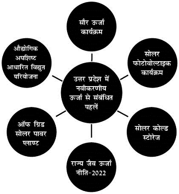 उत्तर प्रदेश में नवीकरणीय ऊर्जा को बढ़ावा देने से संबंधित पहलों की चर्चा कीजिए।