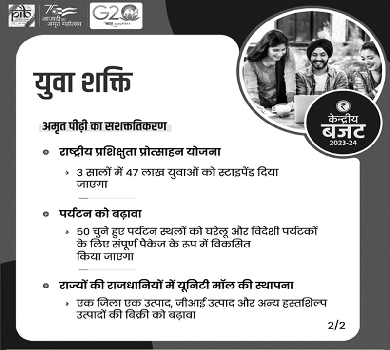 - अखिल भारतीय राष्ट्रीय प्रशिक्षुता प्रोत्साहन योजना (Pan-India National Apprenticeship Promotion Scheme) के अंतर्गत डायरेक्ट बेनिफिट ट्रांसफर पहल को शुरू किया जाएगा। इसके माध्यम सेअगले तीन वर्षों में 47 लाख युवाओं को वृत्तिका सहायता प्रदान करने की योजना है।