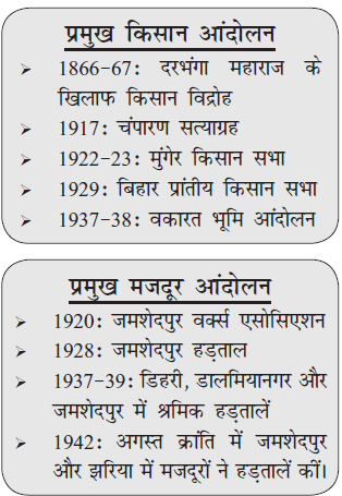 बिहार में किसान और मजदूर आन्दोलन की व्याख्या करें।