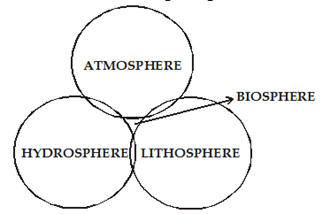 Answer : The air, sea, and land constitute the major portions of four great material realms or spheres, that comprise the total global environment. Three of these realms are inorganic, (i) Atmosphere, (ii) Hydrosphere and (iii) Lithosphere. The fourth realm the biosphere, encompasses all living organisms of the earth. All these realms are in the figure given below: