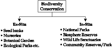 Answer : Broadly biodiversity can be conserved in 2 ways—
