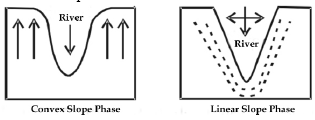 According to Penck, different rates of erosion and upliftment decide the phase of slope development. There are three phases in Penck’s model: